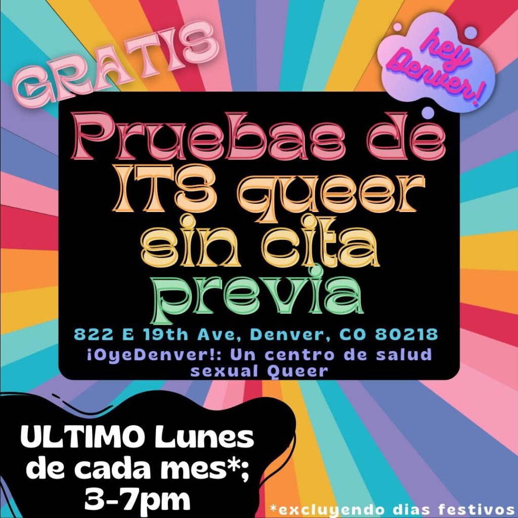 Visite HeyDenver el último Lunes de cada mes* para visitas de pruebas de ITS sin cita previa. El resto del mes solo tenemos disponibilidad por cita. *excluyendo dias festivos
